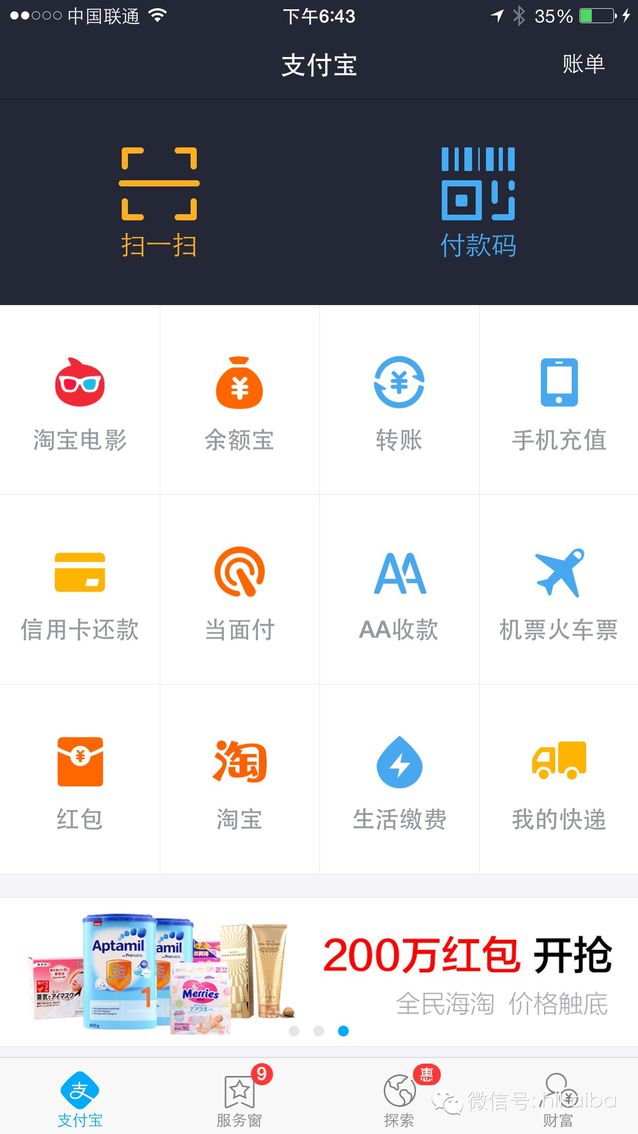 來(lái),看看支付寶要怎么改版。請(qǐng)各位打開支付寶手機(jī)端,見下圖: